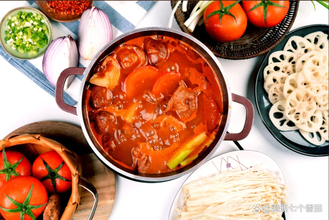 例如:以新鲜番茄熬制的番茄锅底,酸甜可口,富含维生素C和抗氧化物质,备受女性消费者和儿童的喜爱。