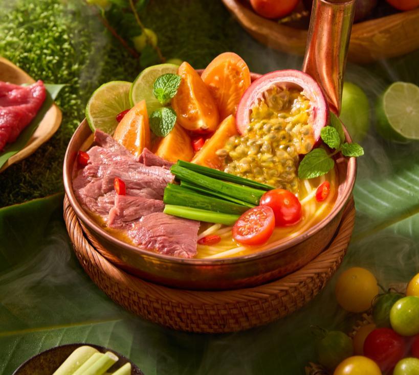 | 操作流程 | 1、小番茄一切二,韭菜切长段,树番茄一切四,柠檬切片,小米辣切圈备用; 2、锅里烧水500g,加入云南酸汤果料100g拌匀,加入米线,树番茄和鲜吊龙煮,吊龙呈现粉红色立即关火。 3、将煮好的酸汤米线装入碗里,将吊龙和树番茄美观的摆放在米线上。 4、点缀上百香果,韭菜段,柠檬片,小番茄,小米辣圈和薄荷叶即可 |