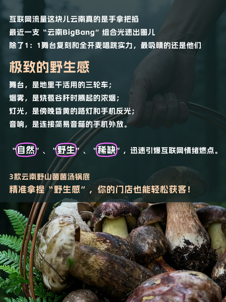 自然、野生、稀缺,迅速引爆互联网情绪燃点。3款云南野山菌汤料轻松拿捏“野生感”,让你的门店生意火过云南BIGBANG