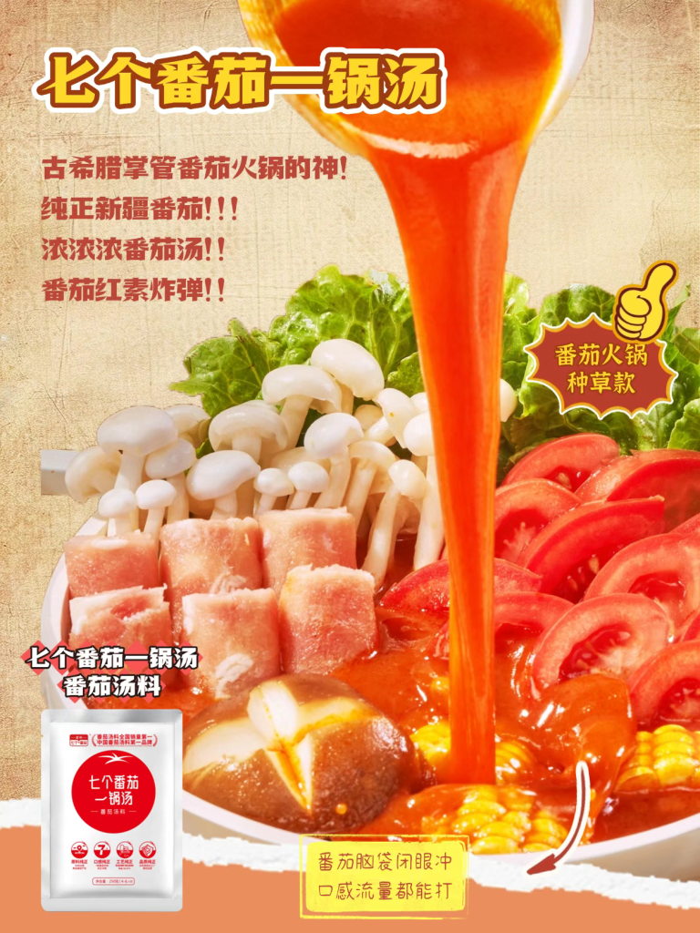 这波暖冬火锅,不挑客群老少皆宜,覆盖多种热门口味。在澄明七个番茄,还有更多口味汤底、蘸酱等,无论您是大连锁还是街边店,都有完整的味道解决方案与之匹配,火锅老板可以快速跟进,站对风口稳赚钱!