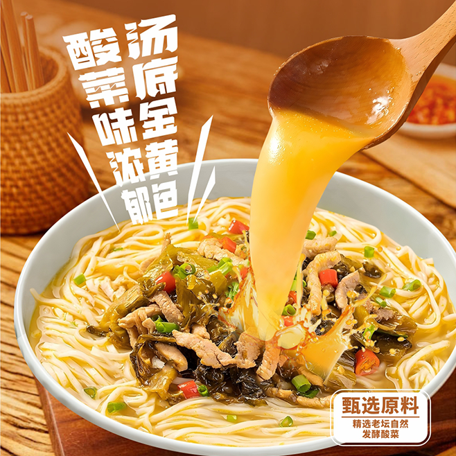 酸菜味浓郁,金黄高颜值①酸菜味和金汤融合自然,突出酸菜本味②明火炒制,双重锁鲜工艺,香味更突出③多场景应用,便捷出餐