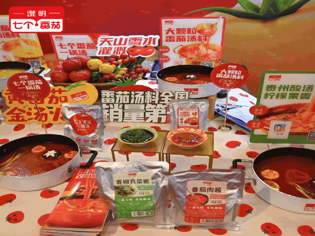 番茄肉酱蘸酱为餐饮门店提供适配家庭客群的火锅蘸酱解决方案,为当下暑期亲子餐饮场景提供助力,助力餐厅在细分化的市场中占领流量高地。以澄明七个番茄一锅汤为核心,形成集酸汤、蘸酱等创新爆品的产品矩阵,食客将“美味”、“社交”和“猎奇”融于一餐,火锅门店将“差异”、“利润”、“流量”一网打尽。